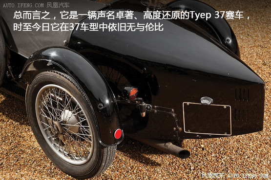 总而言之,它是一辆声名卓著、高度还原的Tyep 37赛车,时至今日它在37车型中依旧无与伦比。配备原厂底盘和发动机的赛车经过完美的机械复原,依然可参加各种拉力赛,不可否认,Type 37是众多经典车中当之无愧的强者。